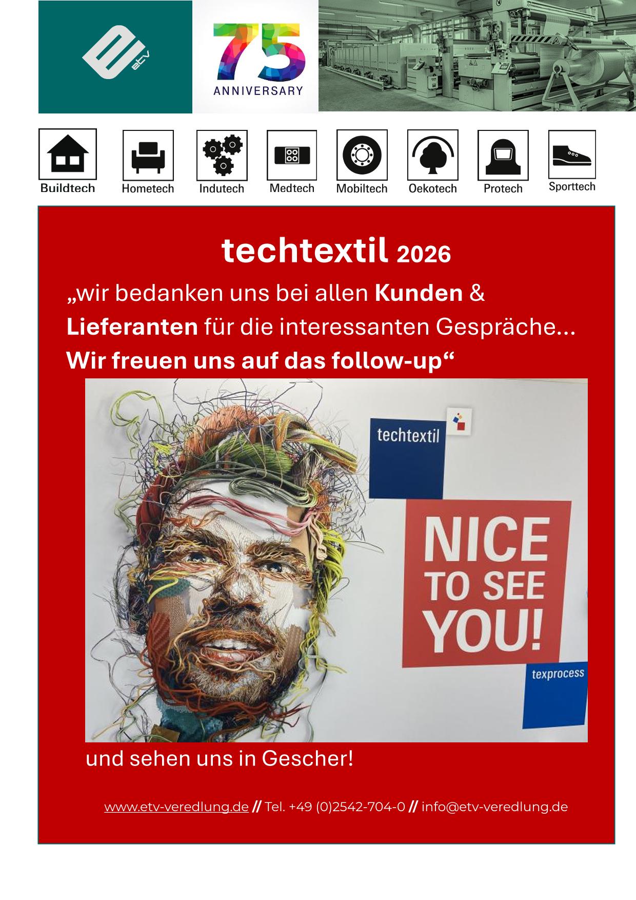 „wir bedanken uns bei allen Kunden & Lieferanten für die interessanten Gespräche… Wir freuen uns auf d2026-04-24 techtextil Frankfurtas follow-up“